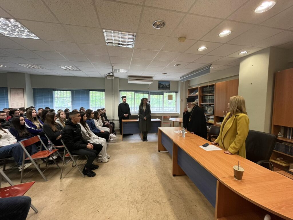 Μέ ἰδιαίτερη χαρά πραγματοποιήθηκε ἡ ἐπίσκεψη τοῦ Σεβασμιωτάτου Μητροπολίτου μας στό 1ο ΓΕΛ Φιλιππιάδας, κατόπιν εὐγενικῆς προσκλήσεως τῆς Διευθύντριας τοῦ Σχολείου, κ. Νατάσσας Παλιάτσου. Ἡ ἐπίσκεψη αὐτή ἀποτέλεσε μιά ξεχωριστή εὐκαιρία πνευματικοῦ διαλόγου καί οὐσιαστικῆς ἐπικοινωνίας μἐ τούς μαθητές.