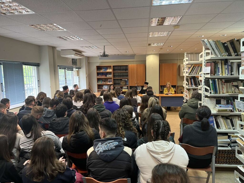 Ὁ Σεβασμιώτατος συνομίλησε μέ τούς μαθητές τῆς Β’ Λυκείου σέ κλῖμα ἀμεσότητας καί εἰλικρίνειας, δίνοντας χῶρο στίς ἀγωνίες, τούς προβληματισμούς καί τά ἐρωτήματά τους. Οἱ μαθητές ἔθεσαν ζητήματα πού ἀπασχολοῦν ἔντονα τή σύγχρονη νεολαία, ἀποδεικνύοντας τή διάθεσή τους γιά οὐσιαστική ἀναζήτηση καὶ προβληματισμό.